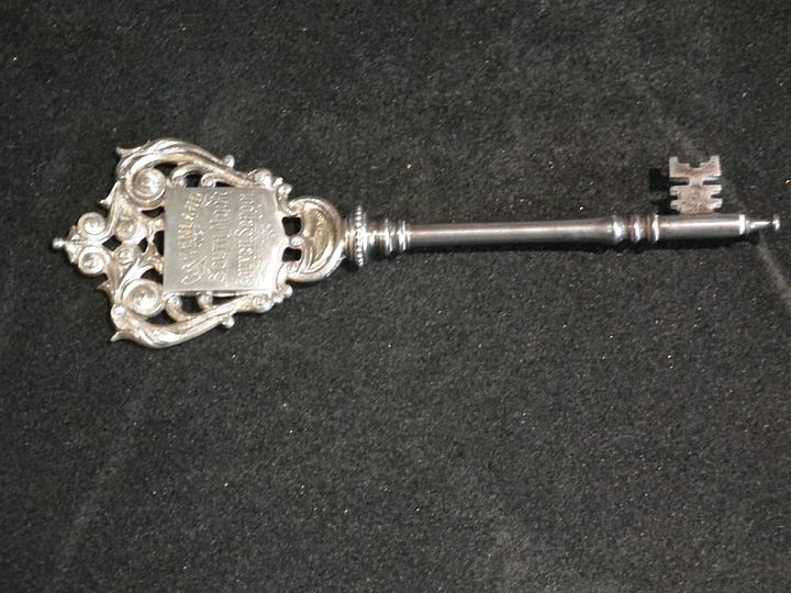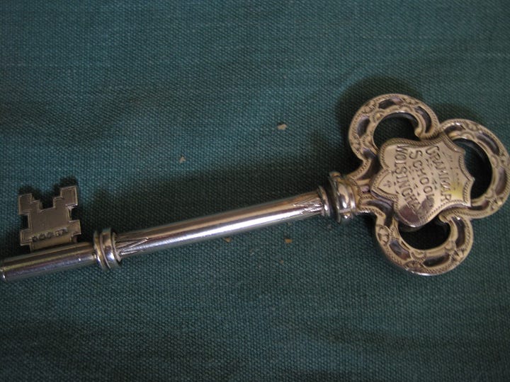 But it was in the field of education that Henry Curry Wood made his greatest mark, and this is where the public record intersects with the personal. In addition to the lavish amounts of silver inherited from my Scottish great-grandparents, I acquired a couple of silver keys, inscribed with the names of schools, dates, and the name Alderman H. C. Wood. My great-grandfather presided over a huge programme of school building and was often presented with a commemorative key as part of the opening ceremony.